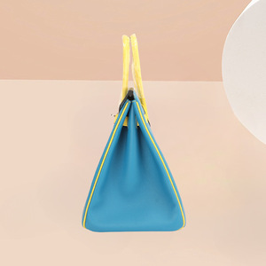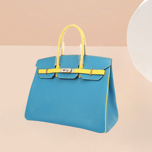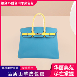プラチナ 35 カラーブロックヤギ革バッグストラップレスバッグバッグサイズ中型リストバッグハンドバッグファッション女性のバッグ