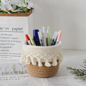 Ins風編み化粧ブラシバケツ筆筒製物置かご手作り綿ロープ家庭用デスクトップ雑物整理収納かご