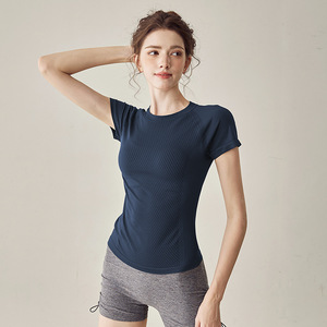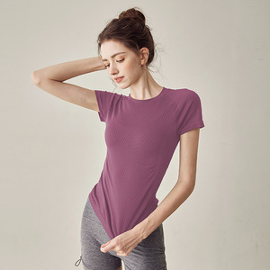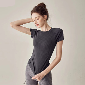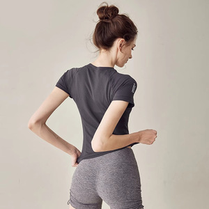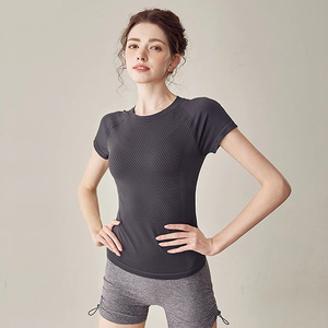 女性用の新しい夏のフィットネストップス、シームレスなタイトフィットの痩身ヨガウェア、半袖スポーツトップス、インナーウェア用のランニングTシャツ