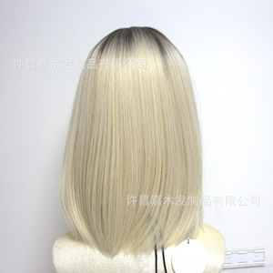 Temu人気ストレートかつら女性茶色グラデーション金色前髪波頭短髪全頭カバー染色ボブWig