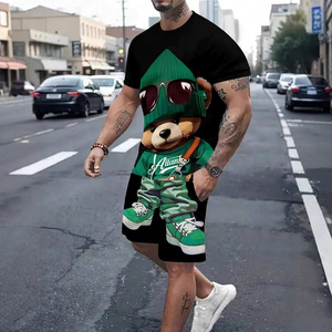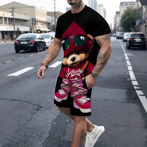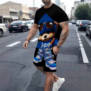 夏の新しいぬいぐるみクマのシンプルなパターンのデジタルプリント半袖ショーツ T シャツスーツクロスボーダー外国貿易