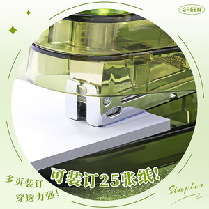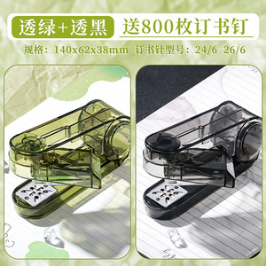 大型回転式【透明グリーン+透明ブラック】ホチキス針800本付属