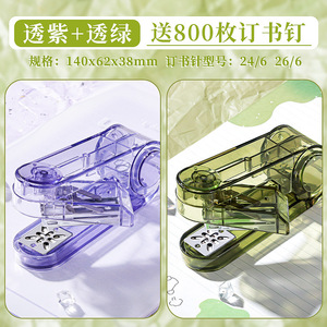 大型回転式【透明紫+透明緑】ホチキス針800本付属