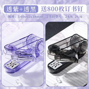 大型回転式【透明紫+透明】ホチキス針800本付属