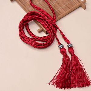 編みロープ両端タッセル付き160cm 3本撚りポリエステル編みウエストロープ、衣類用吊り下げタッセル、カーテンタイロープ、タッセルロープ
