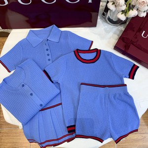 在庫あり 25春夏新作子供親子春夏アイスシルクニットウエスタンスタイルスリムラウンドネックカラーブロック半袖トップス+