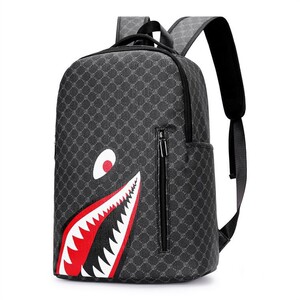 新しいカジュアルサメプリントバックパックビジネス大容量メンズバックパックトラベルバッグキャンパス大学生バッグ