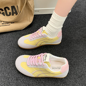 レトロレースアップカジュアルスポーツシューズ女性のための 2025 春の新多用途フラット底道徳訓練フォレストシューズカラーマッチング白靴