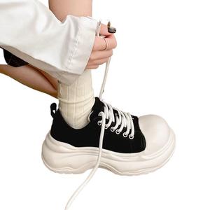 元気なグレープフルーツの厚い底の板の靴の女性の2025春の新型の復古の百合は高くなります。