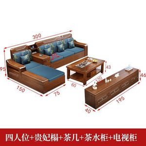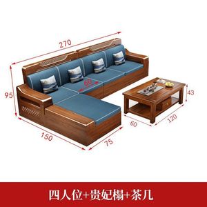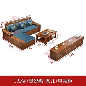 胡桃木新中国式実木ソファー家庭用リビングルーム全実木セット冬夏両用収納木ソファー家具