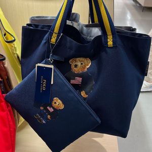 ロッテの新しいバッグポールプリント着用ネイビーブルーセータージーンズクマキャンバスバッグショッピングバッグマザーバッグメンズ