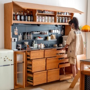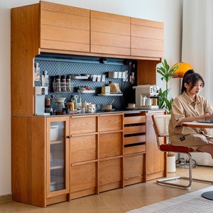 無垢材サイドボードキッチンチェリーウッドリビングルーム収納ロッカー多機能コーヒーと紅茶キャビネットキッチンハイキャビネット