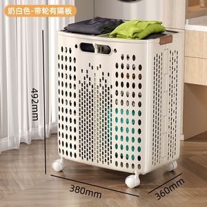 家庭用折りたたみ式汚れた衣類入れ、浴室トイレ用大容量収納バスケット、車輪付き折りたたみ式
