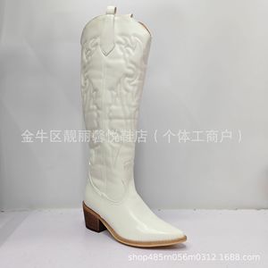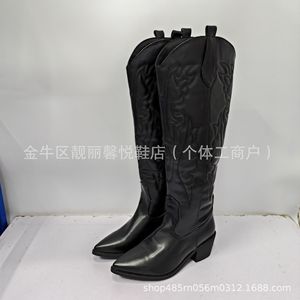 2024 ヨーロッパとアメリカの国境を越えた供給ドロップシッピング 35-43 サイズサイドジッパーミッドヒール厚いヒールハイブーツレディースブーツ X675