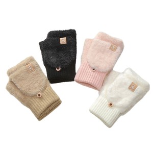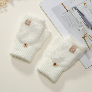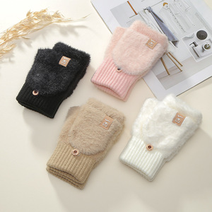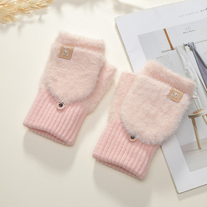新しいハーフフィンガーフリップアップニットぬいぐるみ冬プラスベルベット厚みのある屋外防寒指なしタッチスクリーン手袋