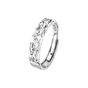 貔貅トランスファーリングメンズトレンディニッチ人差し指リングシングルリングブライトシルバーシンプルな個性多用途リング調節可能