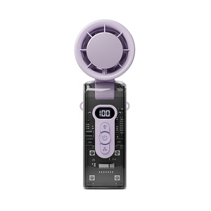 高速冷却アイスコンプレッサーファン、透明メカ、デジタルディスプレイ、ポータブルUSB充電、折りたたみ式、強風、ライト付きハンドヘルドファン