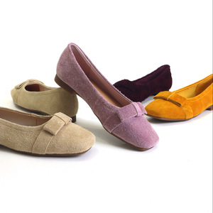 牛革の小さい大衆の設計の蝶結びのフランスの本革のスエードの方角の平底の靴の浅い口の乳の靴のzy 123 278