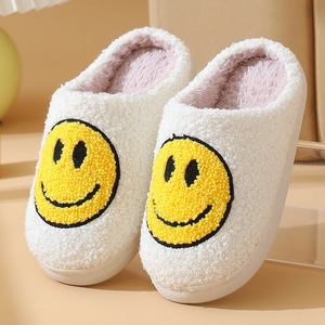 秋冬の女性と女の子向けのクロスボーダー電子商取引スマイリーフェイス、家庭用と屋内用の綿スリッパ、男の子向けのかわいいTEMU漫画ドロップシッピング