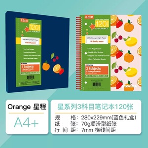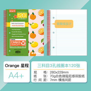 【Xingcheng-Orange】3科目(写真120枚) 3穴コイルブック 1パック 蛍光シールなし