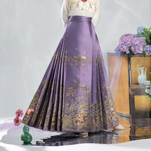 華麗な紫色の金織馬面スカート + 白いトップ + 赤い雲肩