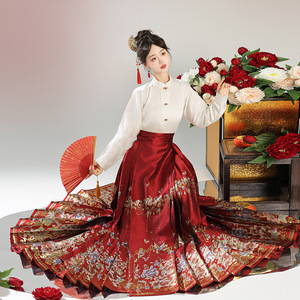 華麗な赤い金織り馬面スカート + 白いトップ + 赤い雲の肩