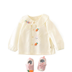 女の子のおしゃれな薄手の2025年新作子供服長袖ベビーラペルトップドールシャツ子供用シャツ
