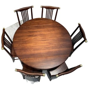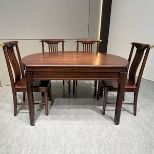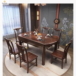 全無垢材のダイニングテーブル、新しい中国風のウッドゴールドの伸縮式正方形と円形の折りたたみ式ダイニングテーブル、家庭用の小さなダイニングテーブル