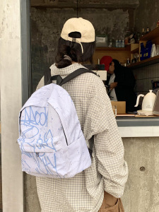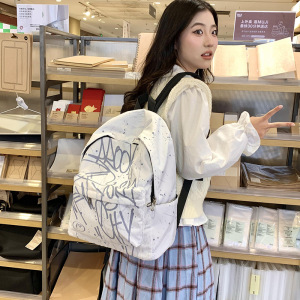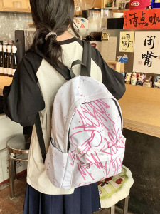 グラフィティプリントバックパックイン新しい中学生スクールバッグシンプルな通勤バックパックカレッジスタイル軽量バックパック