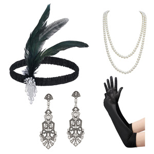 1920 年代のフェザーヘッドバンドヘッドドレス仮装独身パーティーパーティーアクセサリー 4 点セット女性のジュエリードレスアップ