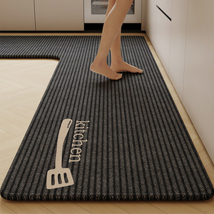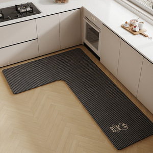 2025新型キッチンフロアマットl字型一体吸水吸油滑り止め家庭用モダンシンプル7字形カーペット