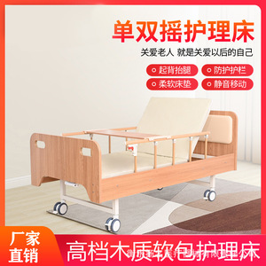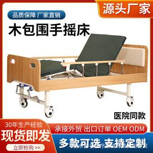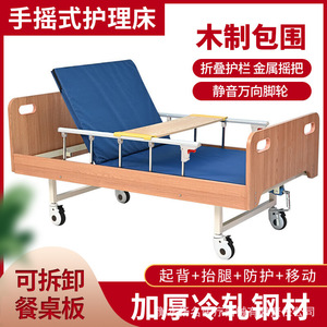 手動木製囲いシングルおよびダブルシェイク介護ベッド家庭用麻痺高齢者病院多機能介護ベッド昇降医療ベッド