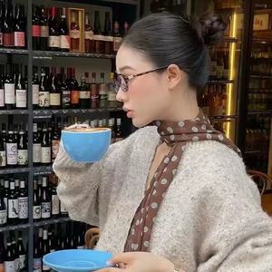 棕色波点丝巾印花高级百搭配饰系脖女年新款发带绑发长条围巾