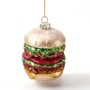 クリスマスオーナメントホットドッグバーガーペンダント物理形状ガラス工芸品塗装ピザガラスペンダントオーナメント
