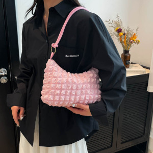 女性のシンプルな気質の優しいしわの腋の下のバッグ女性2025春の新しいシングルショルダーバッグの小さなバッグ