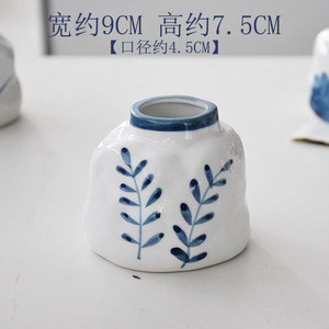 クリエイティブな手描きの青と白のセラミック花瓶インターネット有名人水栽培ポトス水耕花瓶デスクトップオフィス装飾装飾品