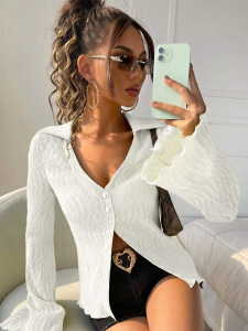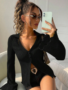 レトロ長袖密め女性服 2025 ヨーロッパとアメリカの春の新デザインベルスリーブシャツ
