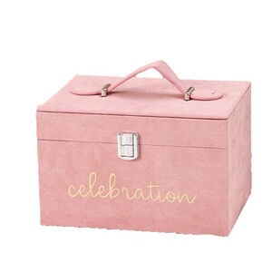 ピンクのベルベット化粧鏡ボックス (コンパートメントなし); 21.7*15.3*13.5cm