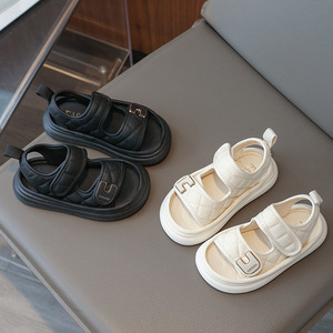 女の子ローマサンダル 2025 新しい夏の小さな女の子のファッションソフト底パンシューズ韓国スタイル中大子供プリンセスシューズ