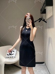 Xiangjia 同じスタイル 2025 初春と秋のスタンドアップカラープルオーバーセータードレスブラックファッション