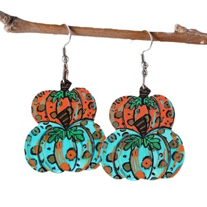 Amazon クロスボーダー 新しい感謝祭秋の収穫ヒョウ柄カボチャペンダントイヤリング木製イヤリング