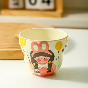 4人家族の家庭用セラミックカップ、かわいい子供用朝食カップ、食器、漫画の高価値コーヒーカップ、マグカップ