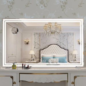 LEDスマートタッチ化粧鏡ライト付きAmazon人気大型デスクトップ壁掛け両用化粧鏡学生イン