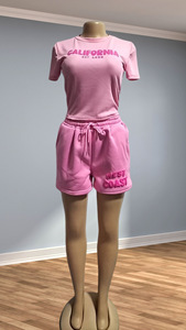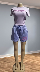 2025现货欧美独立站夏季新品时尚休闲字母印花修身短袖女套装