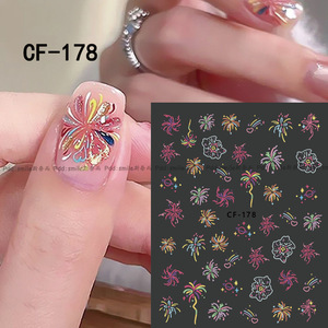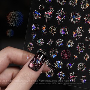 2025 新しい華やかな花火エンボスネイルアート立体ステッカーインカラー花火妖精ハイエンドネイルデコレーション