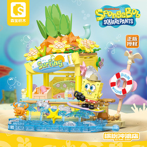新製品 Senbao ビルディングブロックスポンジボブスターパイアススターサーフィン小粒子スプライシング教育誕生日ギフトおもちゃ