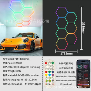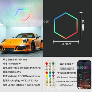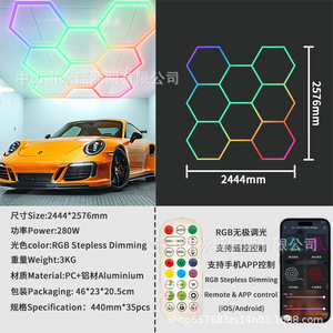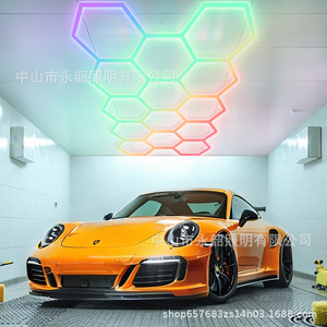 クロスボーダーRGBハニカムライト車4S店ステーションライト防水ワイドLED洗車ライト110V六角カラフル雰囲気