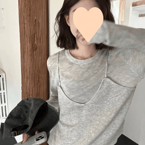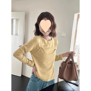 韩系灰色假两件针织衫春秋女2025春季穿搭慵懒风短款长袖上衣