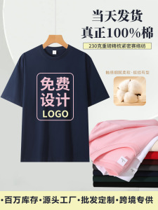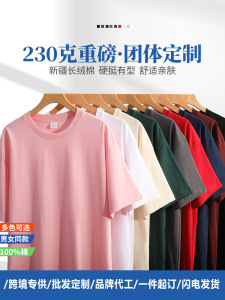 ヘビーウェイトピュアコットンオフショルダーTシャツカスタマイズクラスユニフォーム半袖ラウンドネックプリント文化シャツ230グラムカスタムプリントロゴ