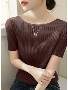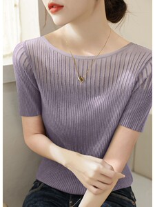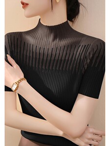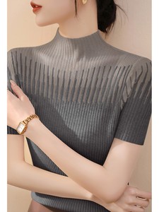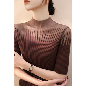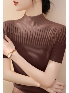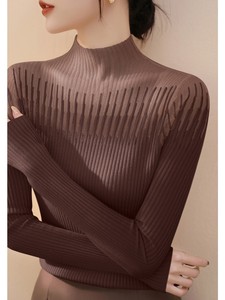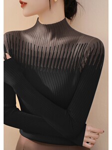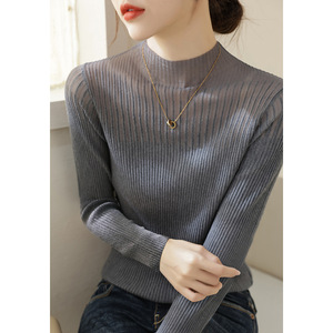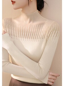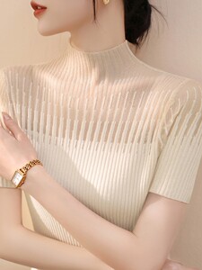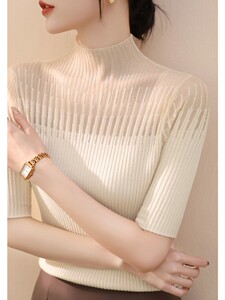 フランスの半高襟レースのニットセーターの女性春秋2025の新型五分袖の中に上着を着ます。